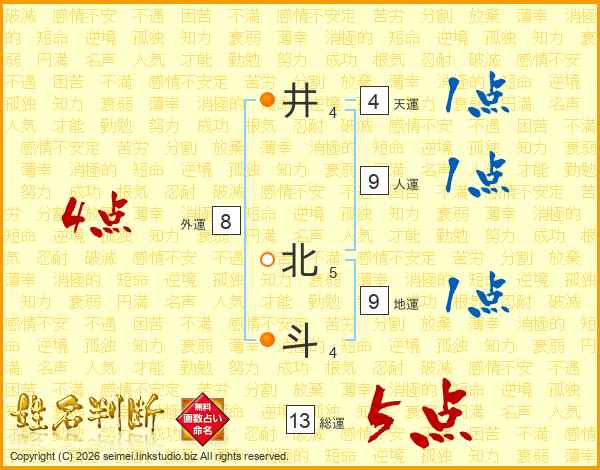 井北斗さんの総運は13画の5点!
