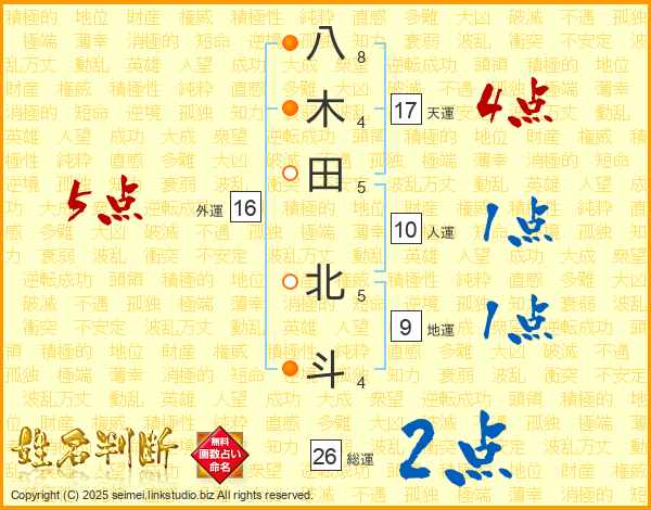 八(8画)木(4画)田(5画) 北(5画)斗(4画)