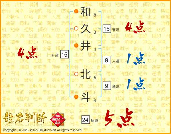 和久井北斗さんの総運は24画の5点!