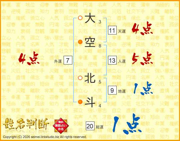 大空北斗さんの人運は13画の5点!