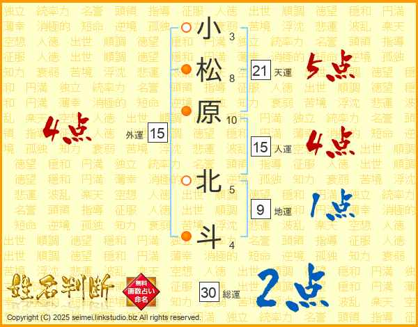 小(3画)松(8画)原(10画) 北(5画)斗(4画)