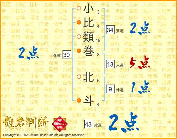 小(3画)比(4画)類(19画)巻(8画) 北(5画)斗(4画)