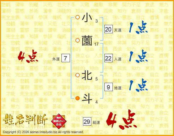 小薗北斗さんの総運は29画の4点!
