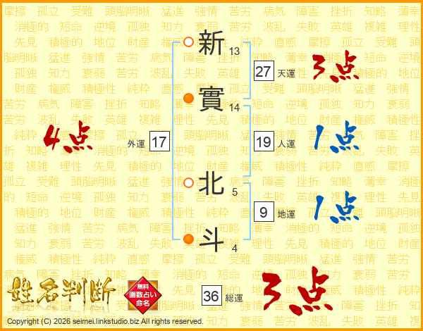 新實北斗さんの総運は36画の3点!