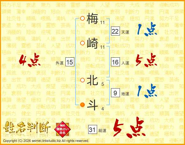 梅崎北斗さんの総運は31画の5点!