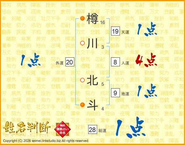 樽川北斗さんの天運は19画の1点!