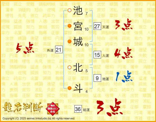池(7画)宮(10画)城(10画) 北(5画)斗(4画)
