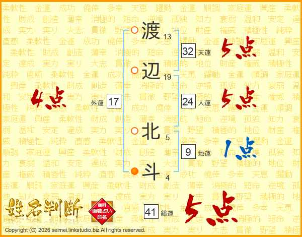 渡辺北斗さんの外運は17画の4点!