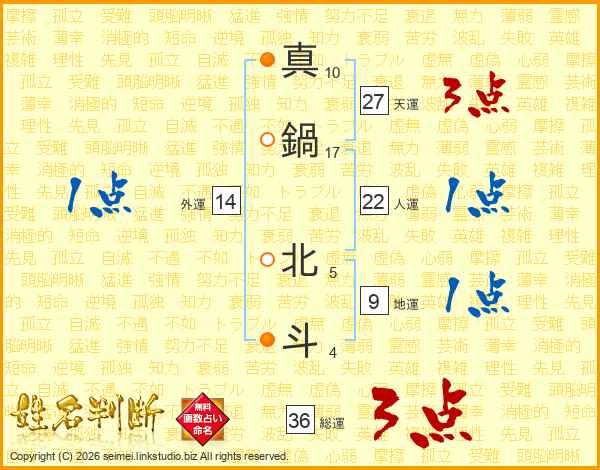 真鍋北斗さんの天運は27画の3点!