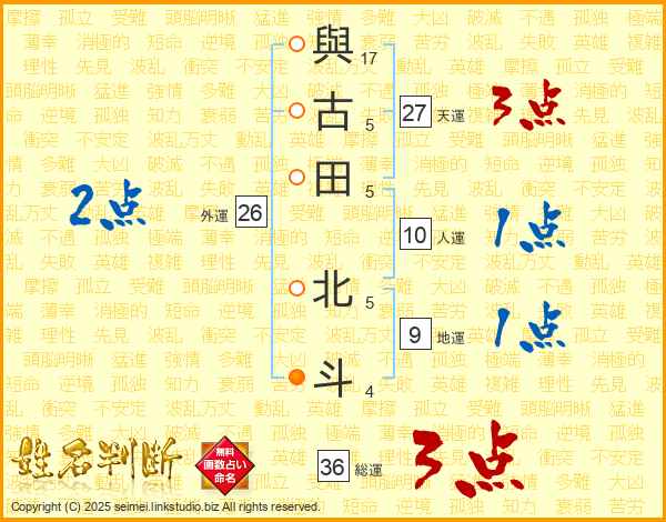 與(17画)古(5画)田(5画) 北(5画)斗(4画)