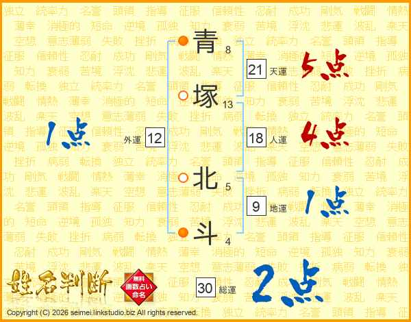 青塚北斗さんの総運は30画の2点!