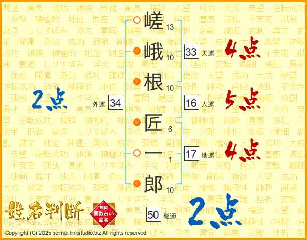嵯峨根匠一郎さんの天運は33画の4点!