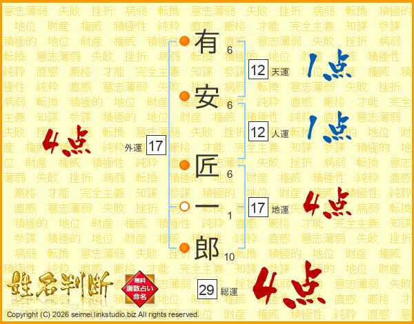 有安匠一郎さんの総運は29画の4点!