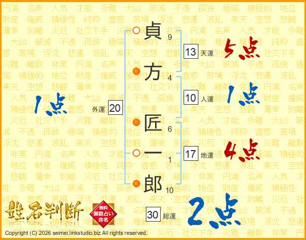 貞方匠一郎さんの天運は13画の5点!
