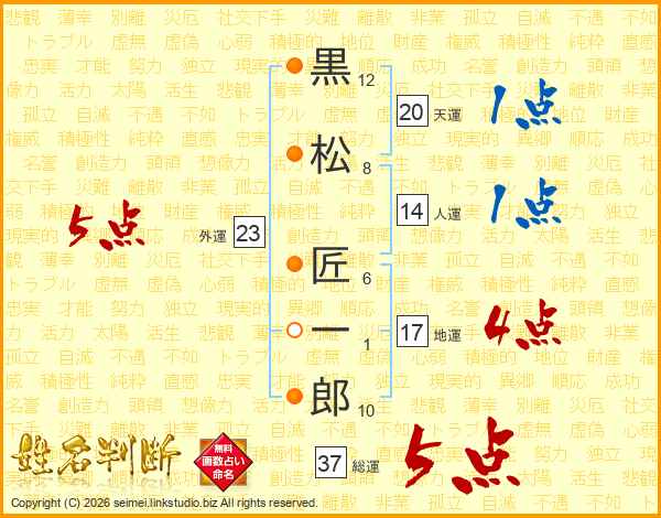 黒(12画)松(8画) 匠(6画)一(1画)郎(10画)