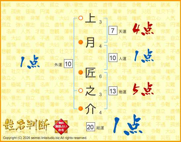 上(3画)月(4画) 匠(6画)之(3画)介(4画)