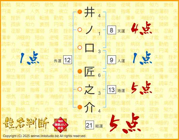 井(4画)ノ(1画)口(3画) 匠(6画)之(3画)介(4画)