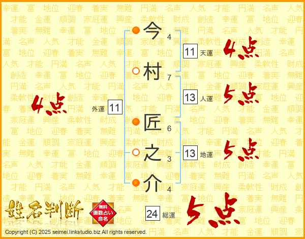 今村匠之介さんの総運は24画の5点!