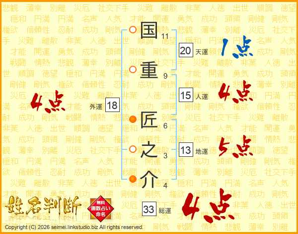 国(11画)重(9画) 匠(6画)之(3画)介(4画)