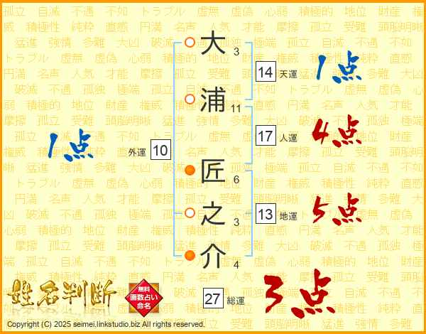 大(3画)浦(11画) 匠(6画)之(3画)介(4画)