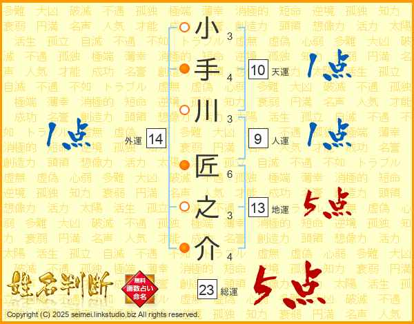 小(3画)手(4画)川(3画) 匠(6画)之(3画)介(4画)