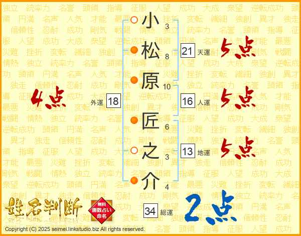 小(3画)松(8画)原(10画) 匠(6画)之(3画)介(4画)