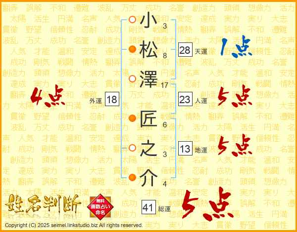 小松澤匠之介さんの総運は41画の5点!