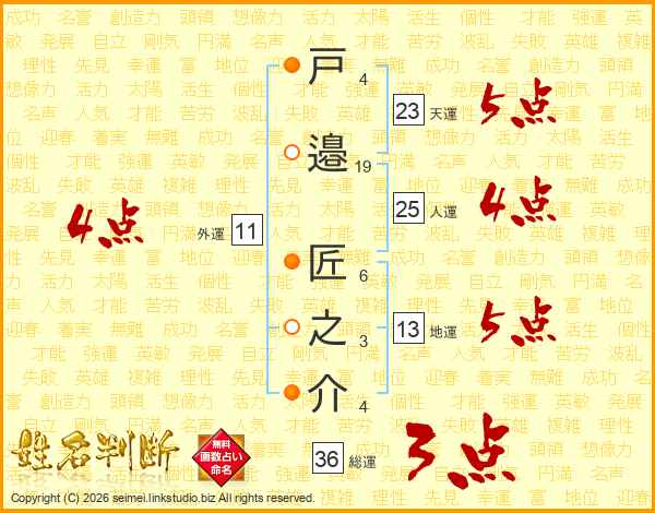 戸(4画)邉(19画) 匠(6画)之(3画)介(4画)