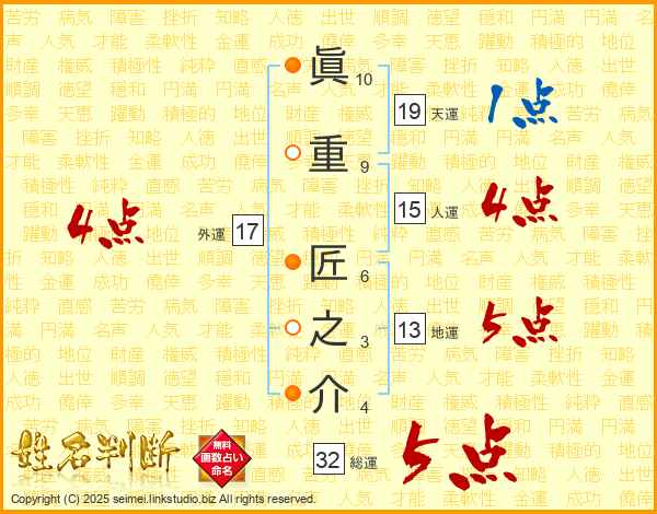 眞重匠之介さんの総運は32画の5点!