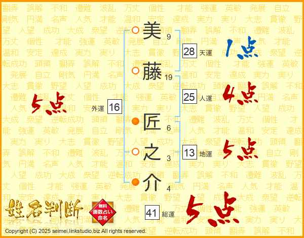 美(9画)藤(19画) 匠(6画)之(3画)介(4画)