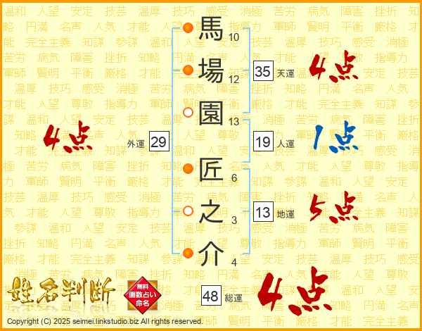 馬場園匠之介さんの総運は48画の4点!