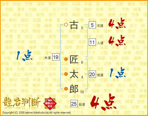 古匠太郎さんの総運は25画の4点!