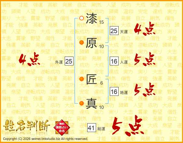 漆原匠真さんの総運は41画の5点!