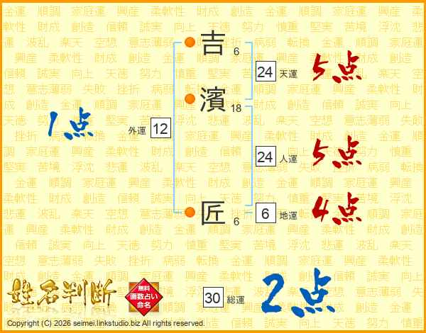 吉濱匠さんの総運は30画の2点!