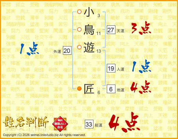 小鳥遊匠さんの総運は33画の4点!