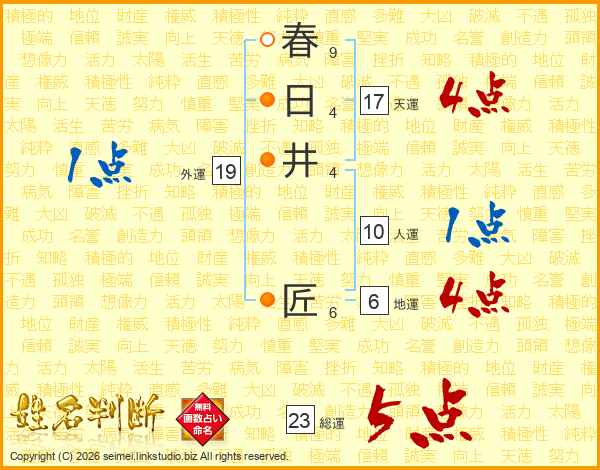 春(9画)日(4画)井(4画) 匠(6画)