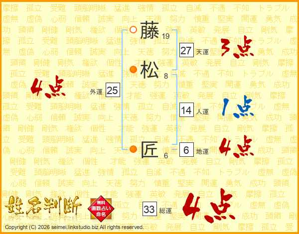 藤(19画)松(8画) 匠(6画)