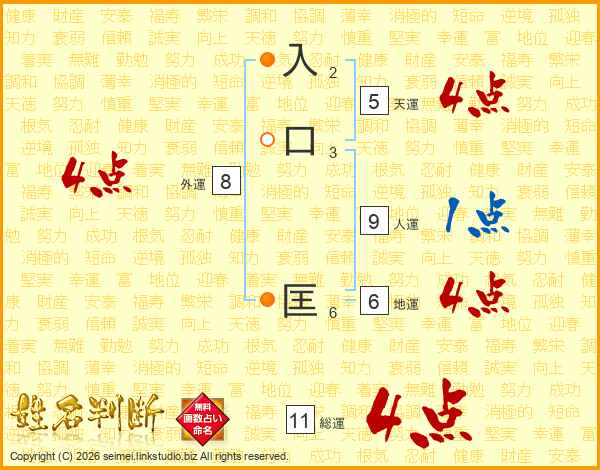入口匡さんの総運は11画の4点!