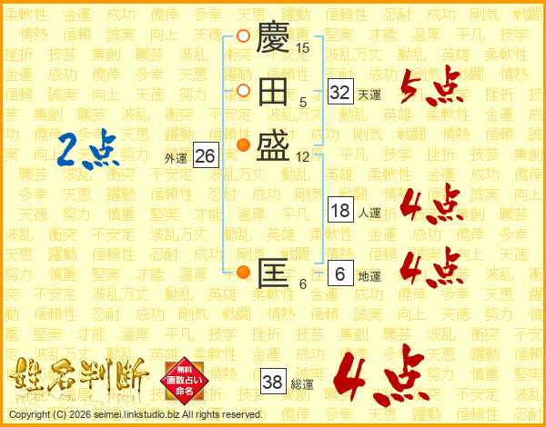 慶田盛匡さんの総運は38画の4点!
