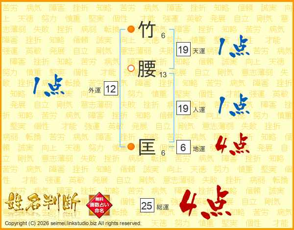 竹腰匡さんの総運は25画の4点!