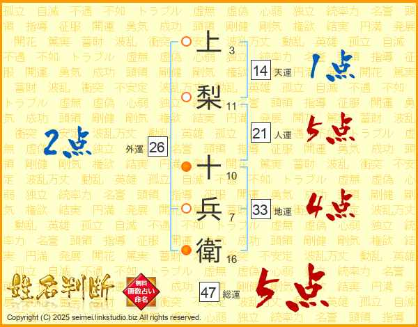 上(3画)梨(11画) 十(10画)兵(7画)衛(16画)