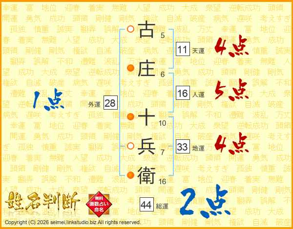 古(5画)庄(6画) 十(10画)兵(7画)衛(16画)