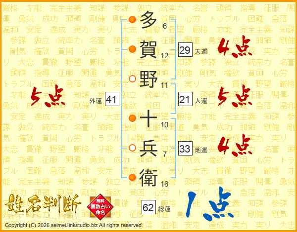多賀野十兵衛さんの天運は29画の4点!