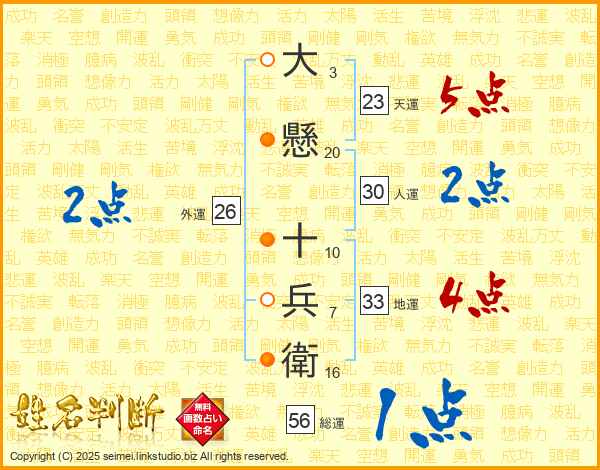 大懸十兵衛さんの総運は56画の1点!