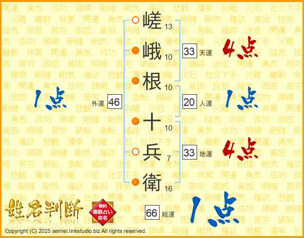 嵯峨根十兵衛さんの総運は66画の1点!