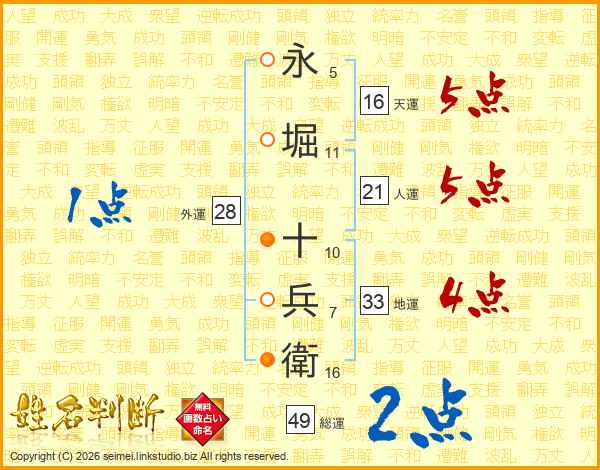 永堀十兵衛さんの総運は49画の2点!