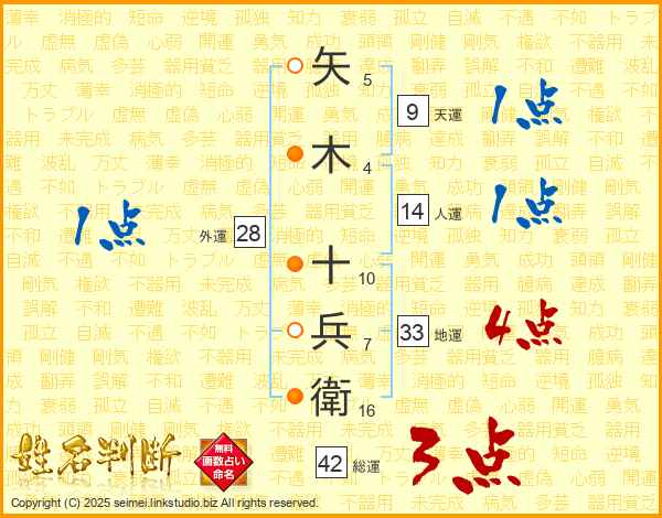 矢木十兵衛さんの総運は42画の3点!