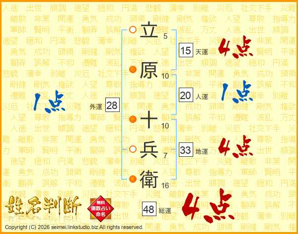 立原十兵衛さんの総運は48画の4点!