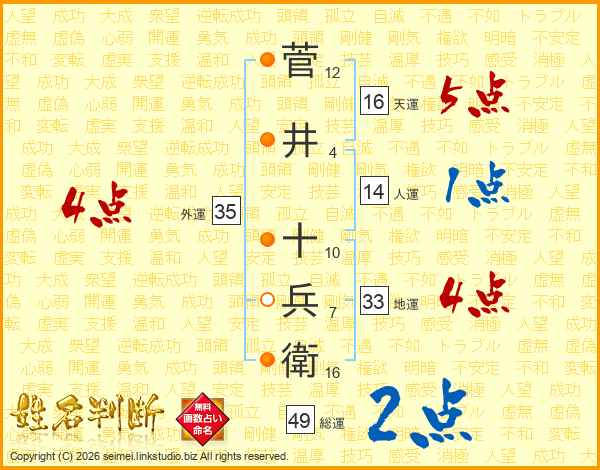 菅井十兵衛さんの総運は49画の2点!
