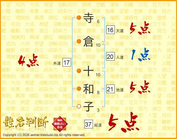 寺倉十和子さんの総運は37画の5点!